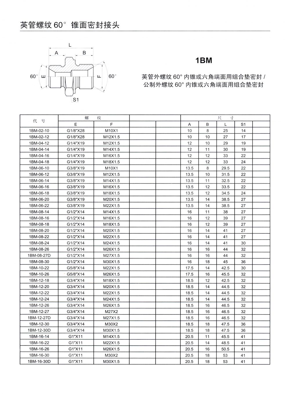 英管螺纹 60°锥面密封接头