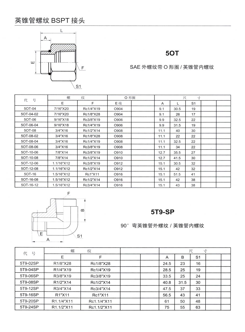 英锥管螺纹 BSPT 接头